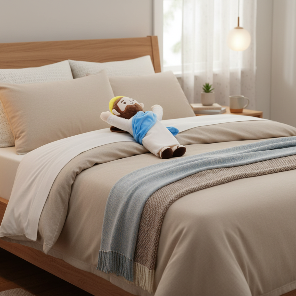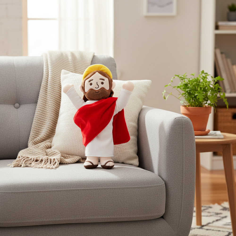 I bought this Jesus plushie for my kid to cuddle with in bed. She loves it and sleeps with it every night.